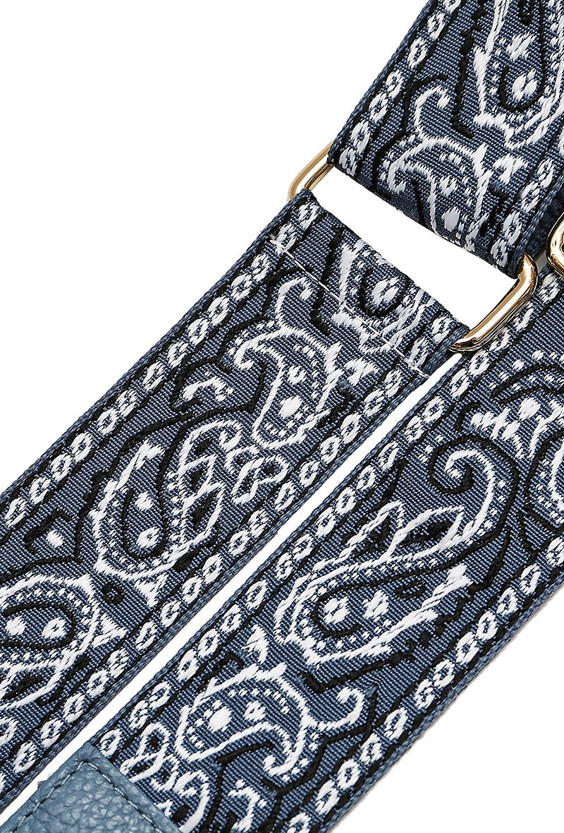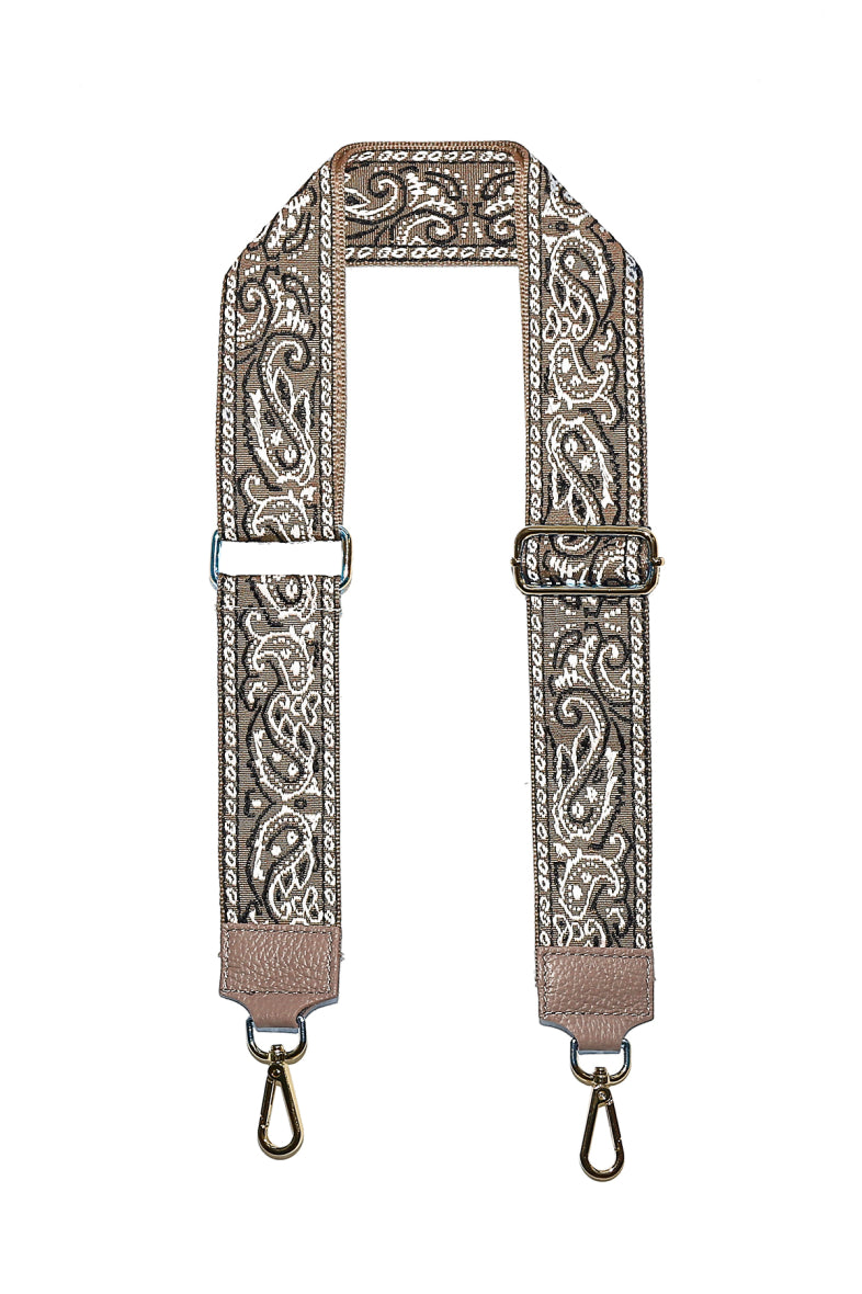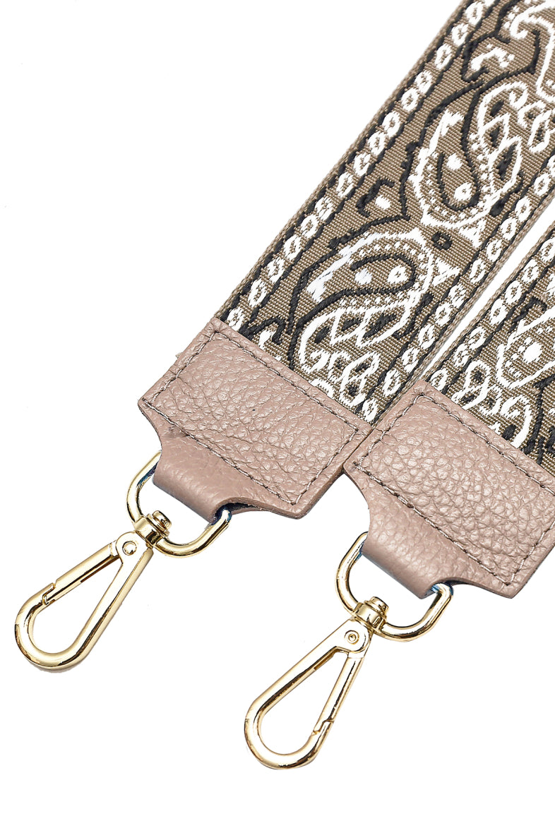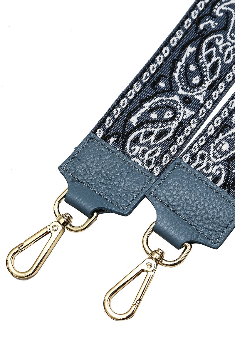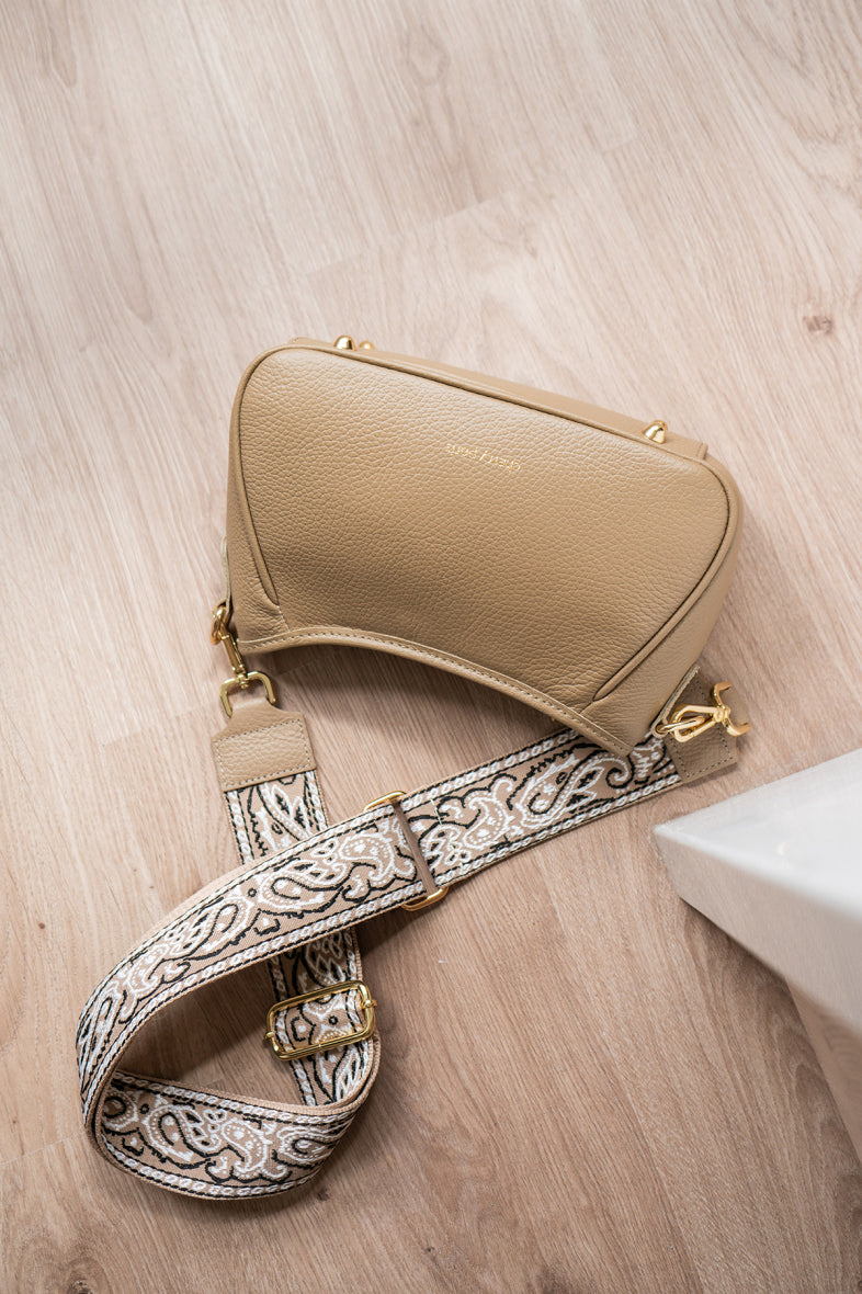 Sangle bandoulière en toile coton garnie en cuir de vachette grainé.